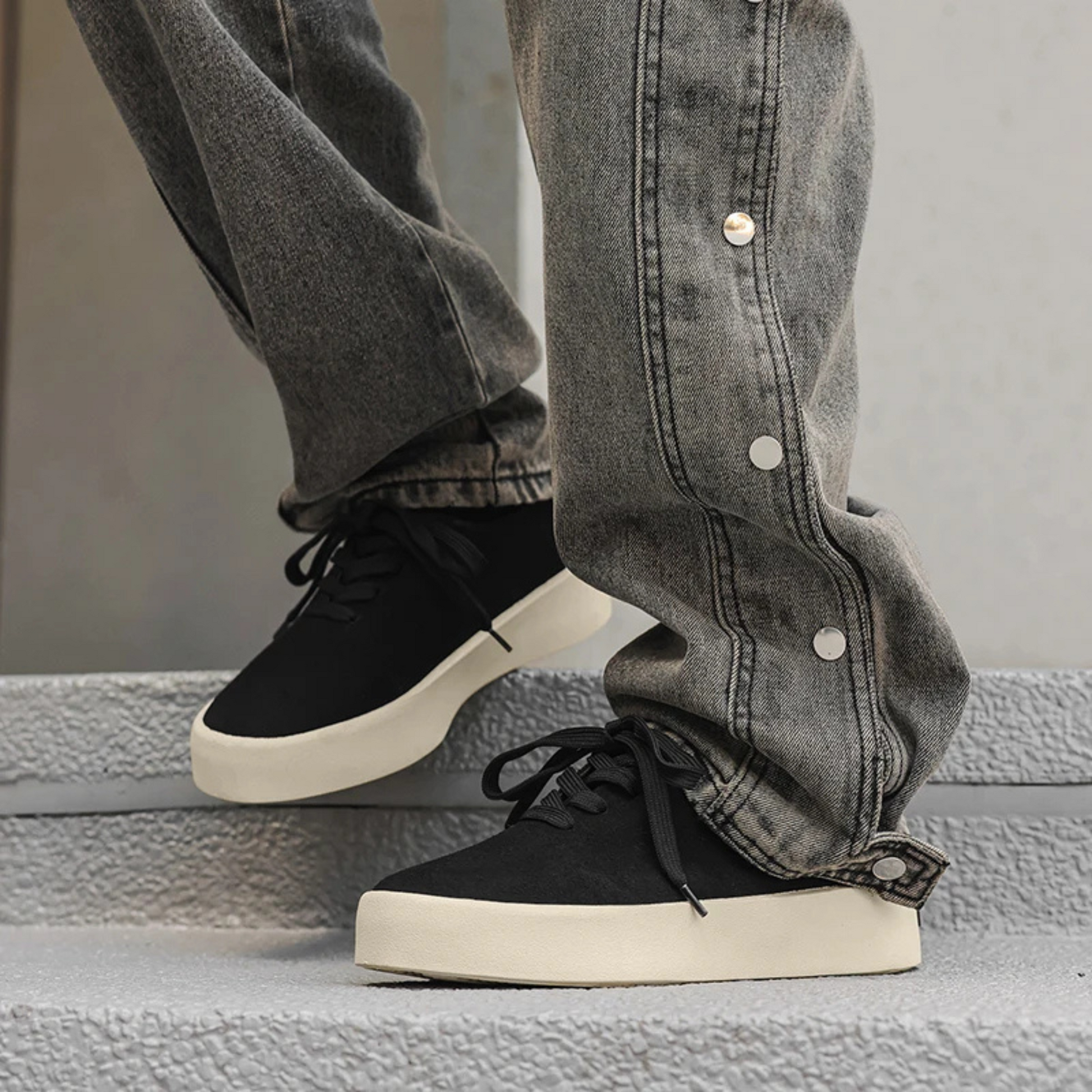 Dale un giro moderno a tu look con estas bambas de ante, diseñadas para destacar sin perder comodidad. Su acabado en ante suave aporta un estilo elegante y versátil, fácil de combinar tanto con outfits casuales como más urbanos. La suela alta ofrece una pisada más cómoda y segura gracias a su diseño resistente.