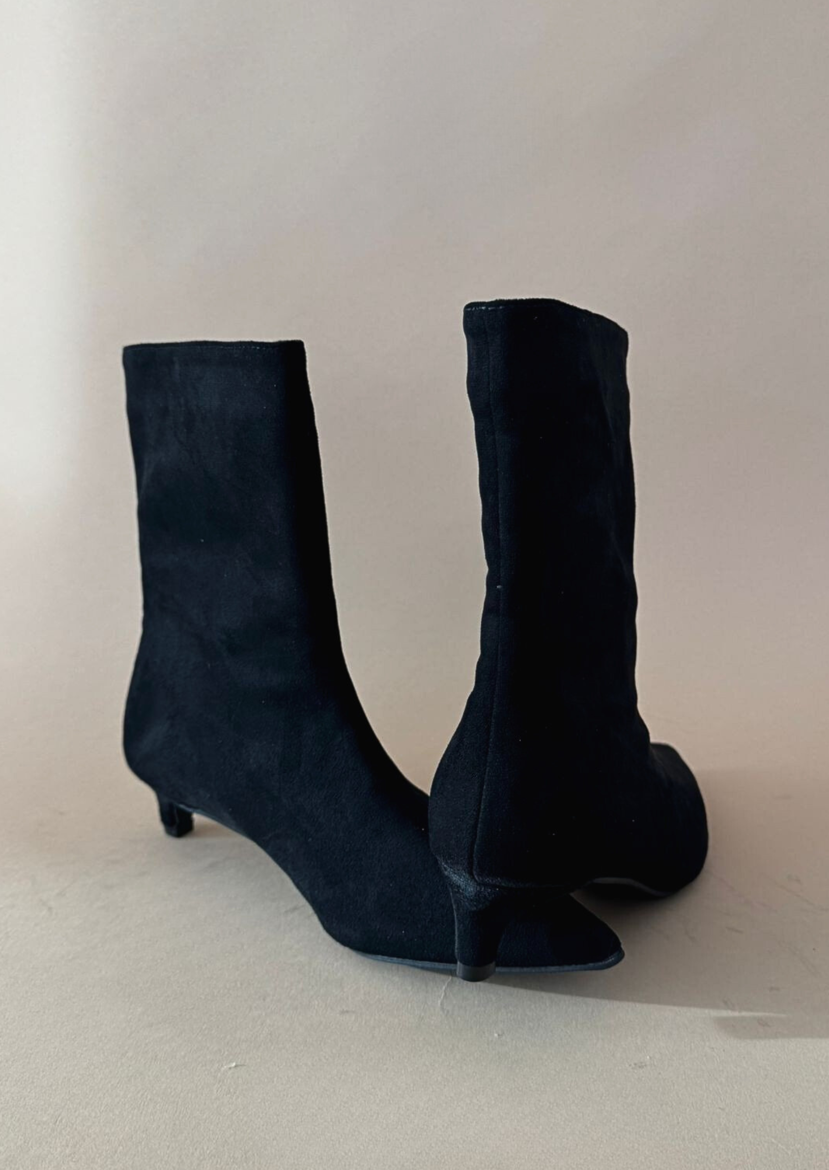 Estos botines de ante, de estilo vintage y tacón bajo, aportan ese toque elegante que nunca pasa de moda. Su textura suave, su forma delicada y su silueta atemporal combinan con todo y elevan cualquier look sin esfuerzo.