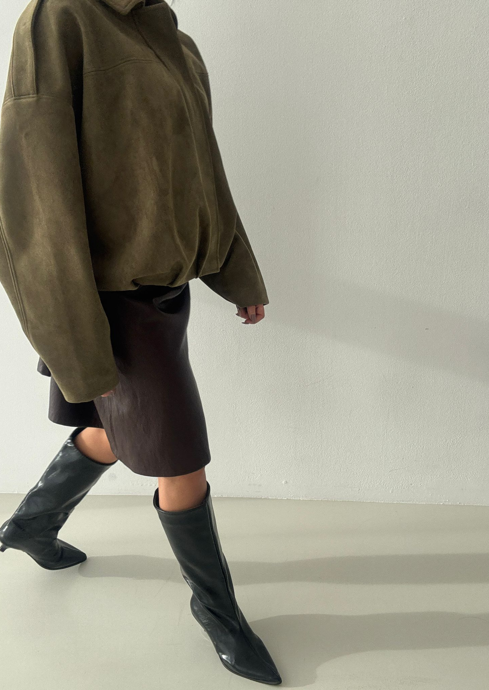 Estas botas altas de charol, con acabado en punta y tacón fino, elevan cualquier look con una mezcla perfecta de fuerza y sutileza. Su brillo refleja seguridad; su diseño, sofisticación.