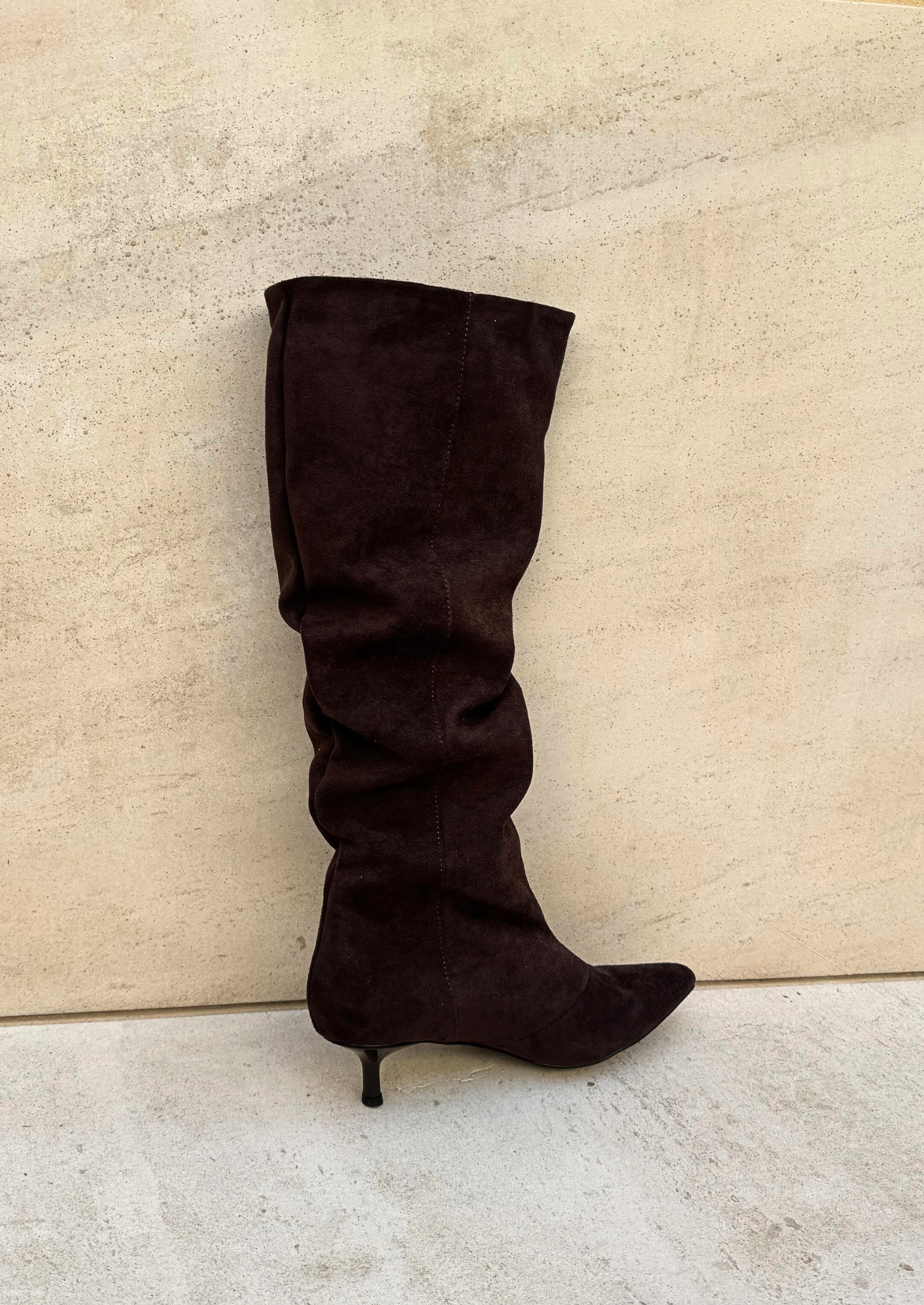 Diseñada en serraje fino, la bota Alma destaca por su caña con delicados detalles fruncidos que aportan textura y estilo. Su tacón kitten ofrece la altura justa para estilizar sin renunciar a la comodidad, mientras que su acabado en punta alarga visualmente la pierna.